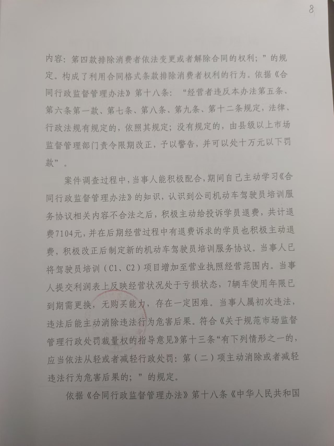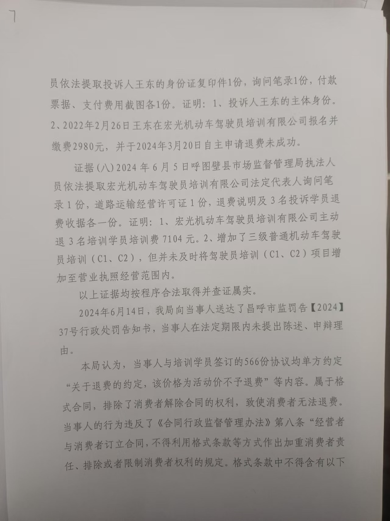 【反不正当竞争执法】呼图壁县宏光机动车驾驶员培训有限公司经营者利用合同格式条款排除消费者权利案
