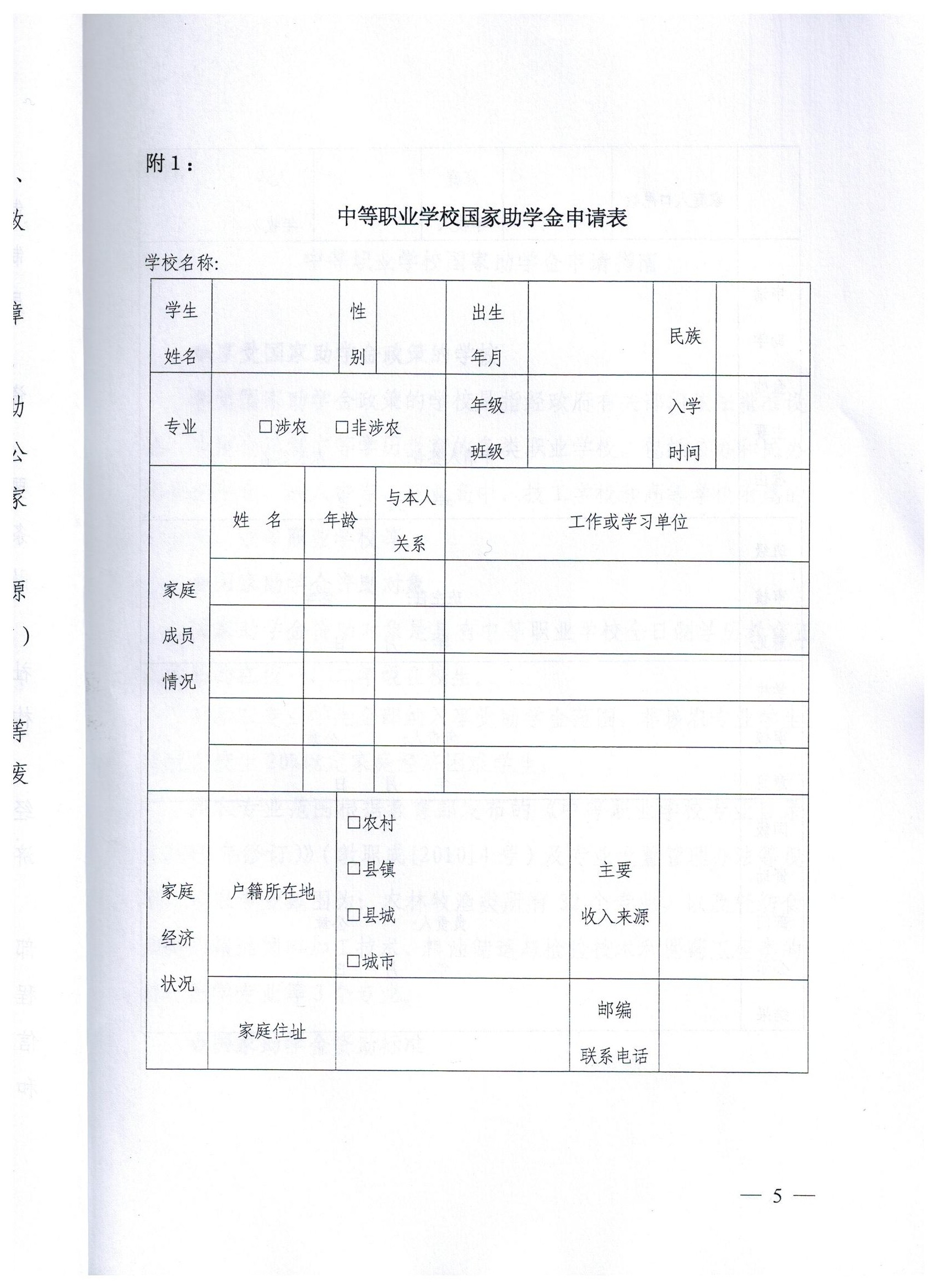 新疆维吾尔自治区中等职业技术学校国家资助申请表