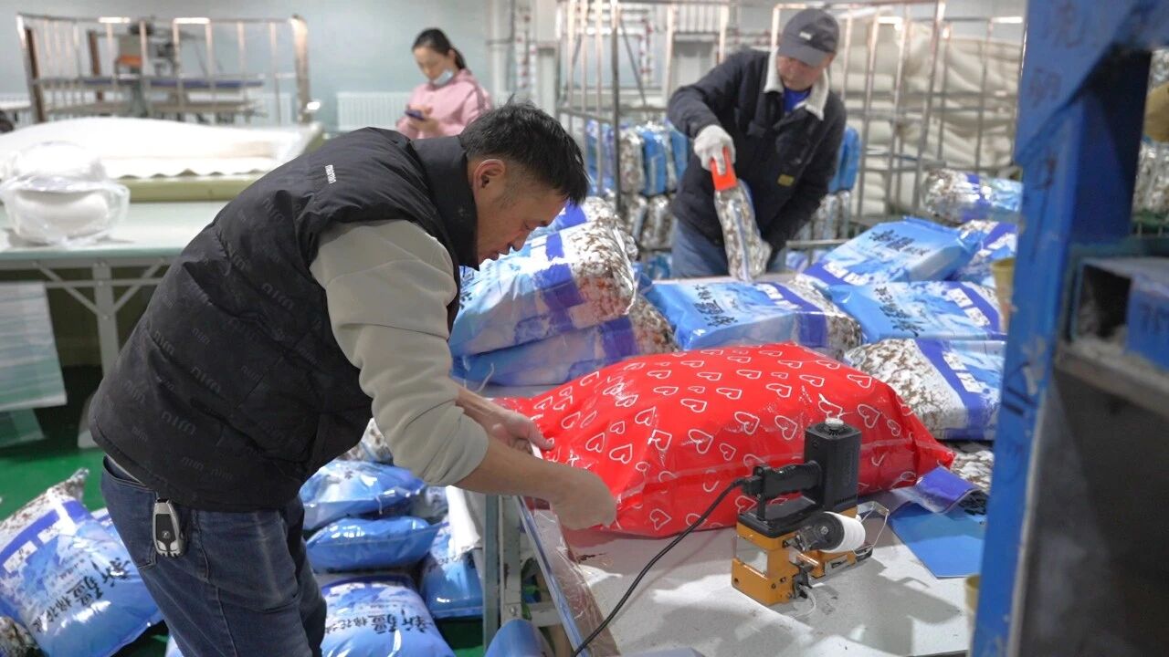 新疆唯美棉品家纺有限公司电商部经理马晶说:“目前,我们正在集中发运新年第一季度的首批订单,主要目的地为安徽、河南地区,总计约一万床。”