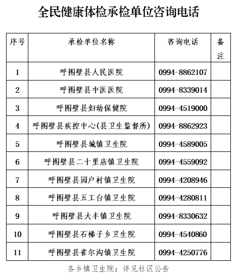 全民免费健康体检是自治区党委、人民政府实施的一项医疗惠民工程,也是县委、县人民政府努力打造“健康呼图壁”,殷切关怀全县各族人民群众身体健康的重要举措。